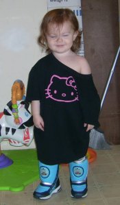 My Hello Kitty tee with her brothers old Thomas boots! Shes a fashionista! HAHAHA