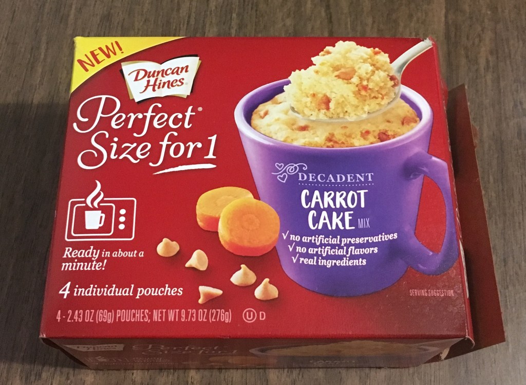 A few weeks back I got a Duncan Hines Perfect Size for 1 box of mug cake mixes.
