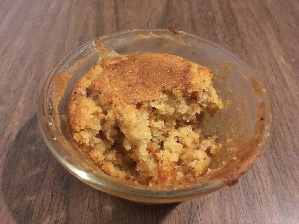 So, 350 degrees for 25 minutes made a perfect little muffin sized cake for me. I did this in the morning before school and it sat in the toaster finished for about 5 minutes as I walked one of my kids to the bus stop. Once I got to it though, it was baked all the way through and moist. I probably should have snapped a picture prior to taking a bite, but it seriously smelled delicious.