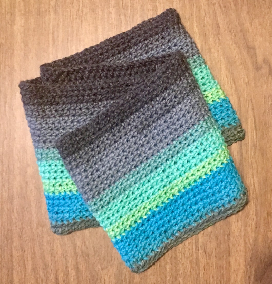 Just like the last one, this is hdc in the round about 150 stitches long and 23 rows high.
