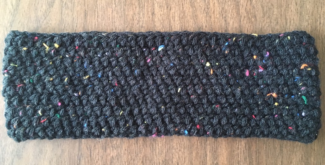 The yarn is Michael’s Impeccable Charcoal Tweed and I used a #8 hook.