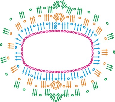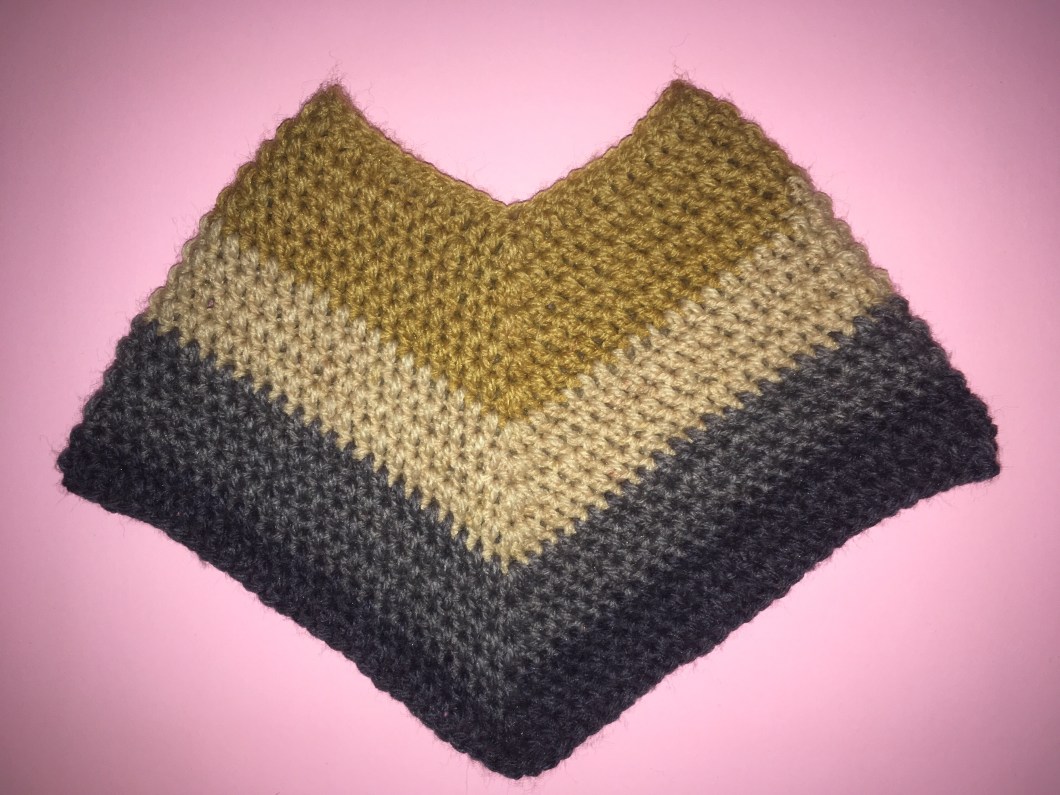I’ve got several scrap and partial balls leftover from all the Lion Mandala cakes I’ve been using. Since this yarn is a lighter weight, I though it would be good for a doll item and decided to try a poncho. I looked for a pattern but really only found granny style ones that I didn’t care for.. but I found this diagram (below) and decided I’d just see what I could come up with.