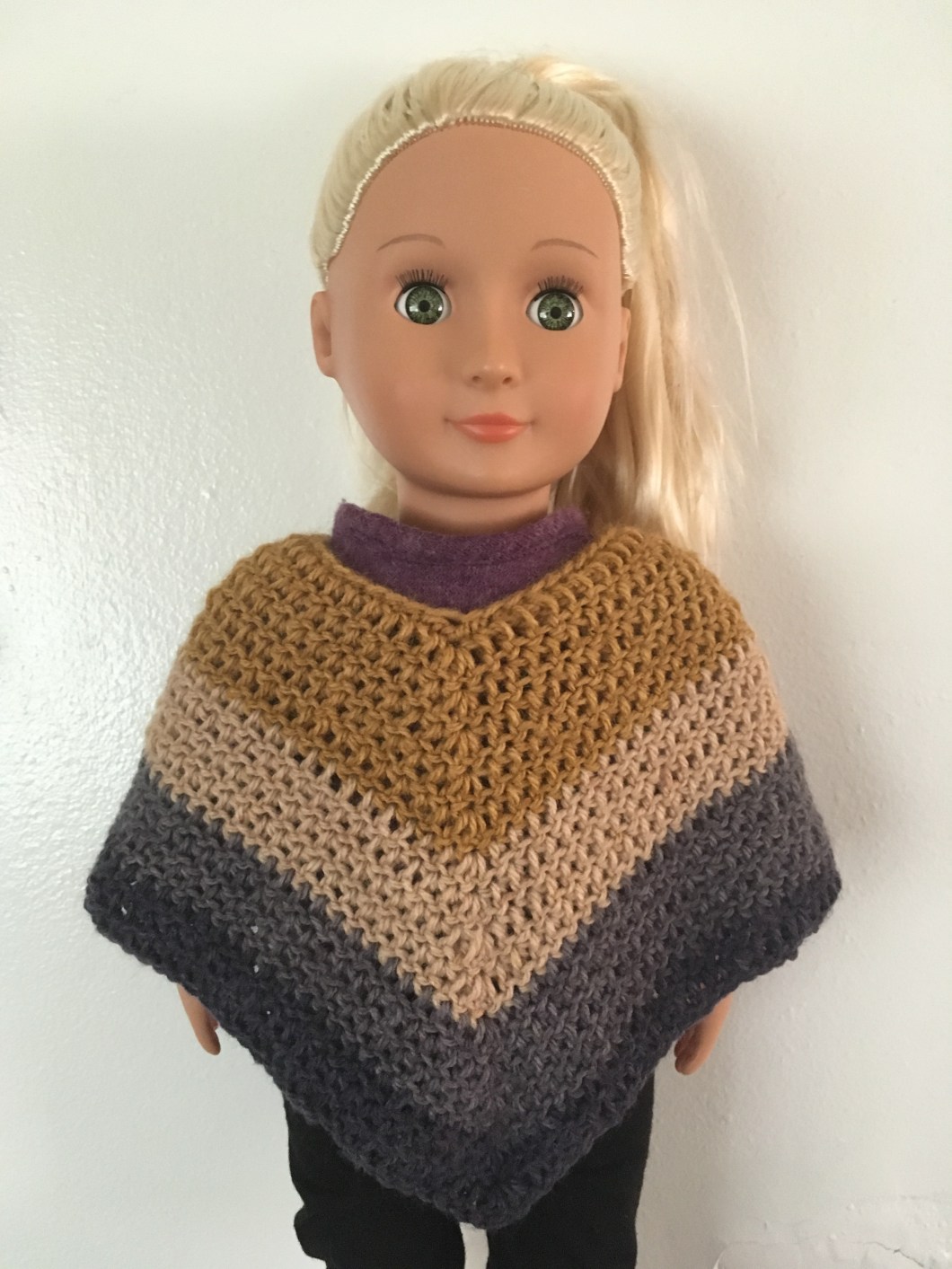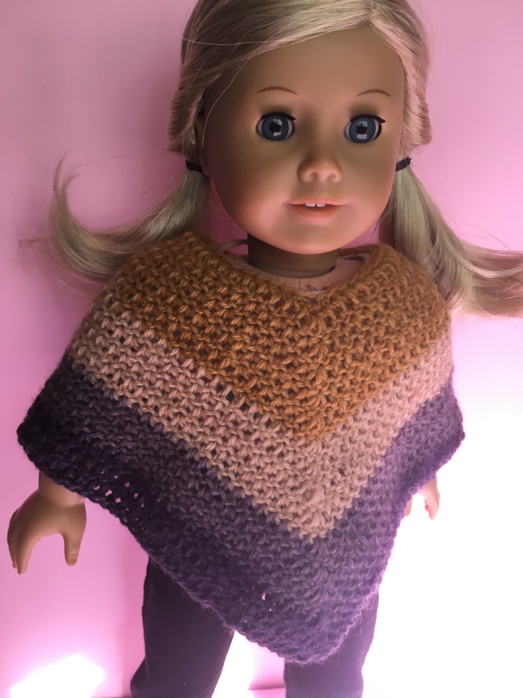 I just double crocheted in the round adding the two extra increase stitches at each half mark. Chaining 50 to start and 15 rows dc with this thin yarn is just right. I really like smaller stitching on doll items and try to use lightweight yarn to get the scale right. Above I’ve got it on an Our Generation doll and below on an American Girl doll.