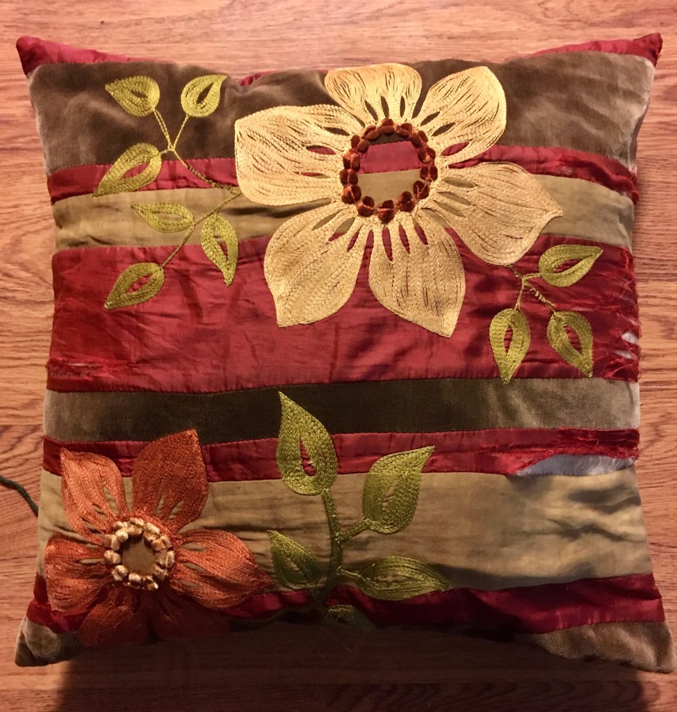 Turned out I had colors similar to what I ordered but only one skein each so I had to scale it down. I also had a couch pillow in desperate need of a facelift.